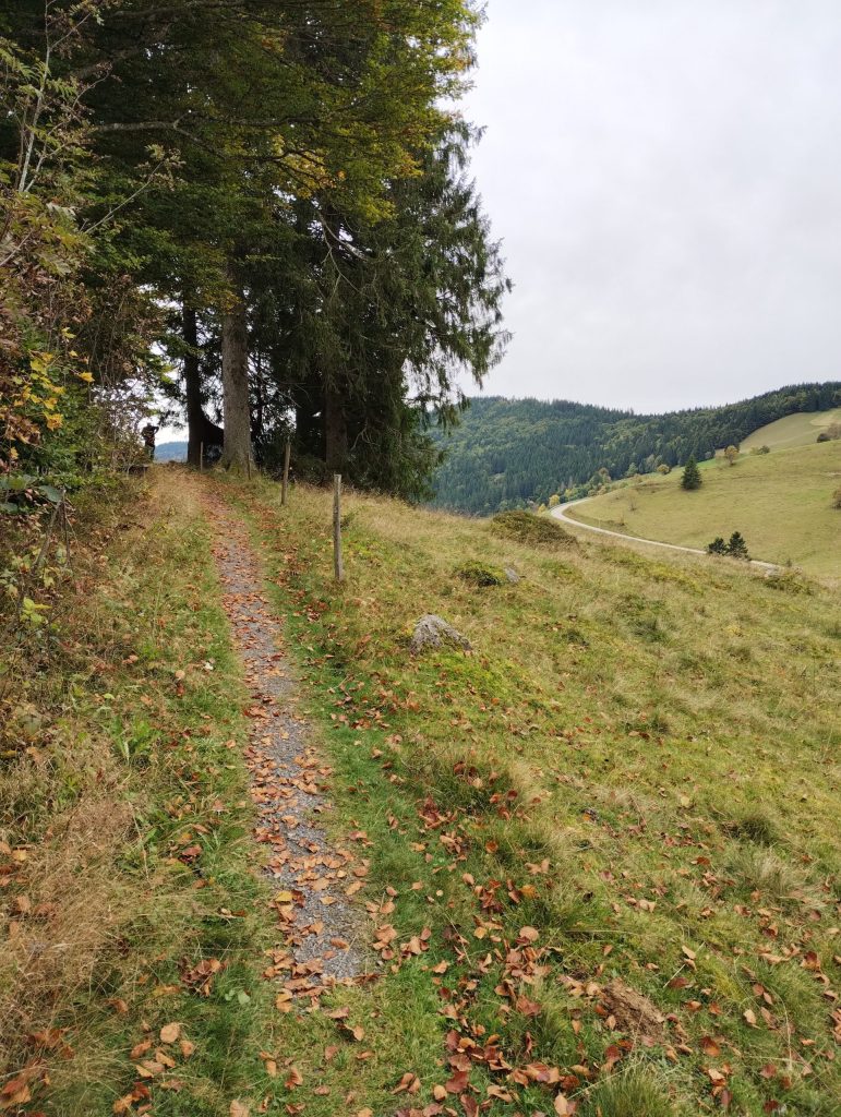 Zu Fuß ging es dann durch schön herbstliche Landschaft, stetig leicht bergab.