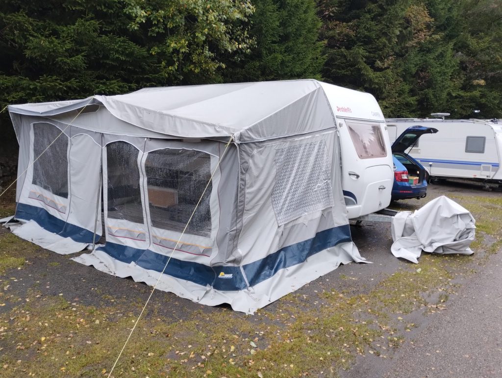 Nachts gab es dann tatsächlich ordentlich Sturm und wir haben uns gefreut im gemütlichen Wohnwagen im Trockenen zu sitzen. Die Heizung lief und der Wohnwagen wirkte immer noch dicht. Nur im Vorzelt gab es eine kleine Überschwemmung, da sich das Wasser vom Boden durch den Vorzeltteppich hoch gedrückt hatte.